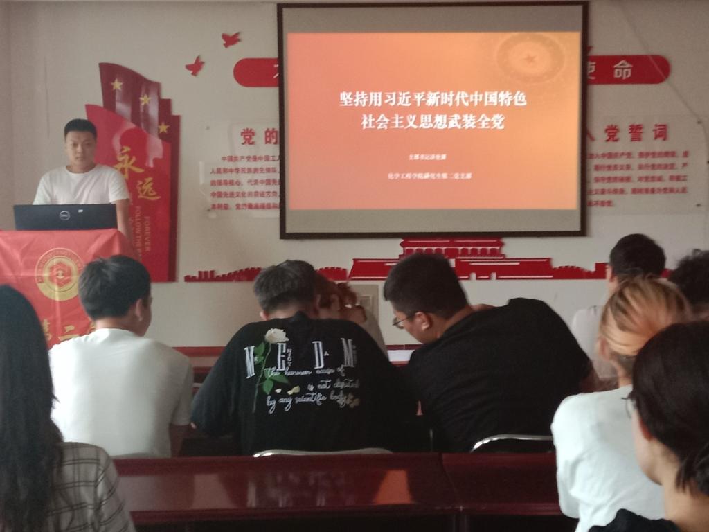 在党课中,穆鹏丞同志要求广大党员要把习近平新时代中国特色社会主义思想转化为坚定理想、锤炼党性和指导实践、推动工作的强大力量,深刻领悟习近平总书记关于教育强国的讲话精神,坚定理想信念,牢记“科技兴国、化工报国”初心使命,努力学习,勇于实践,把论文写在祖国的大地上,把科技成果应用在实现现代化的伟大事业中,在国家重大战略部署中充分发挥青年生力军作用。