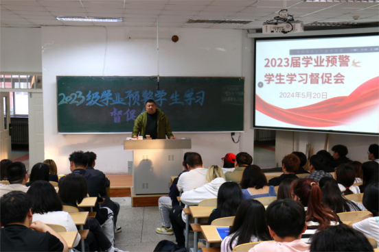 为加强学风建设和学生学习过程管理,全面了解学生的学习困难与思想动态,增强学生工作的实效性,beat365官网于2024年5月20日晚6点在瑞师楼120教室召开2023级学业预警学生学习督促会,针对预警学生开展精准帮扶。本次会议由2023级辅导员王博主持。2023级全体学业预警学生、各班班长和学习委员参会。