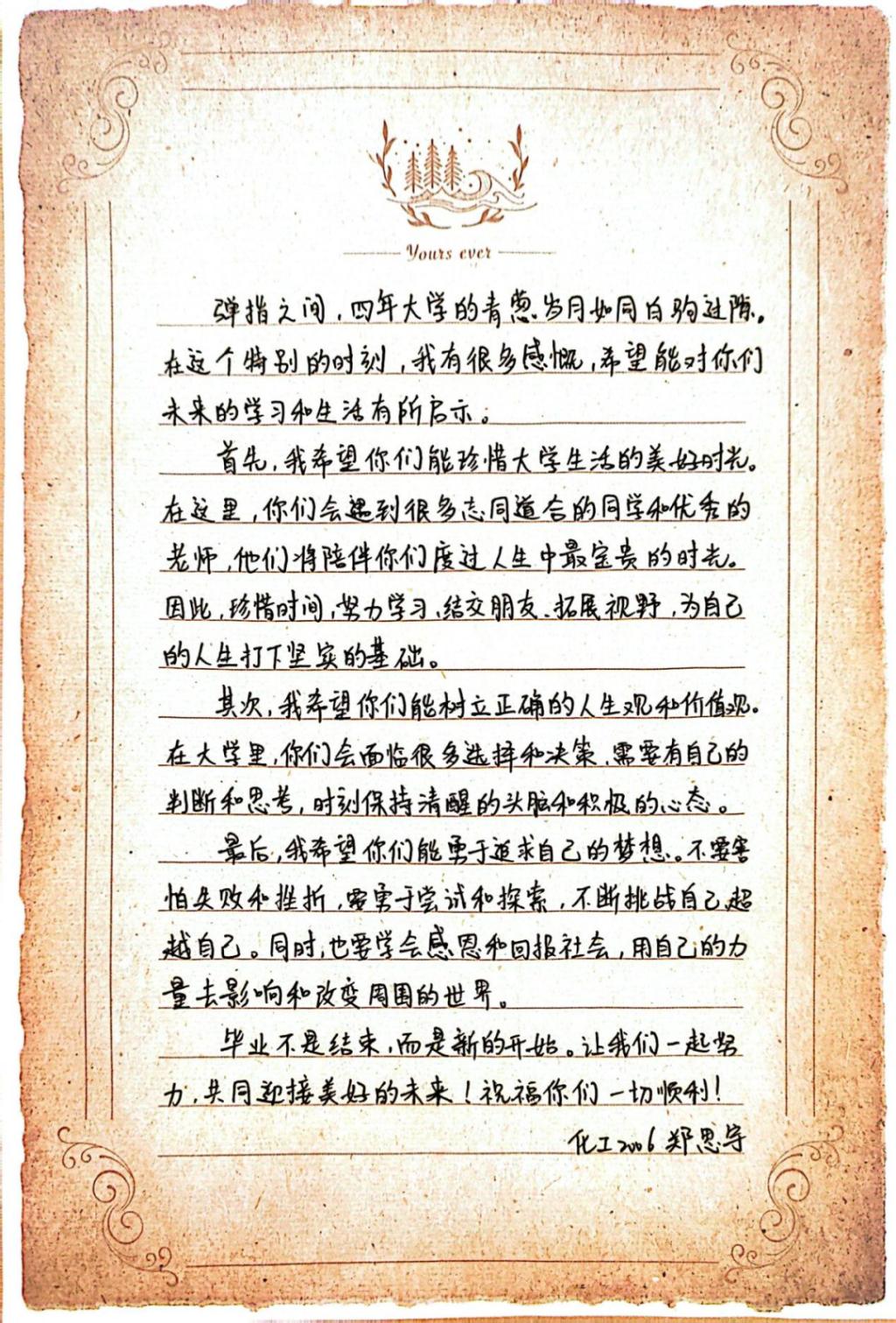山河远阔,满眼星河;青春梦想,扬帆远航。纸短情长,继以传承,beat365官网2024届毕业学子用一封信的形式发来了他们的深情寄语......